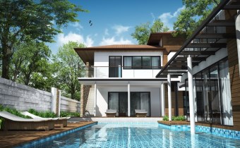 Dom posiada basen i pięknie urządzone, nowoczesne wnętrza.