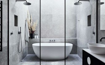 Wyposażenie łazienki lustro, pralka, prysznic z hydromasażem, umywalka, wanna, wanna z hydromasażem, WC